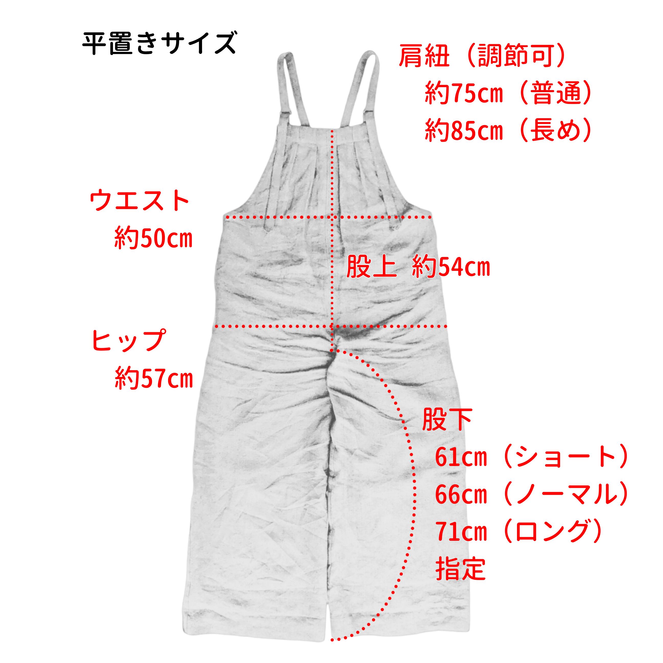 ・股上 約54cm(胸当ての上から股まで)
