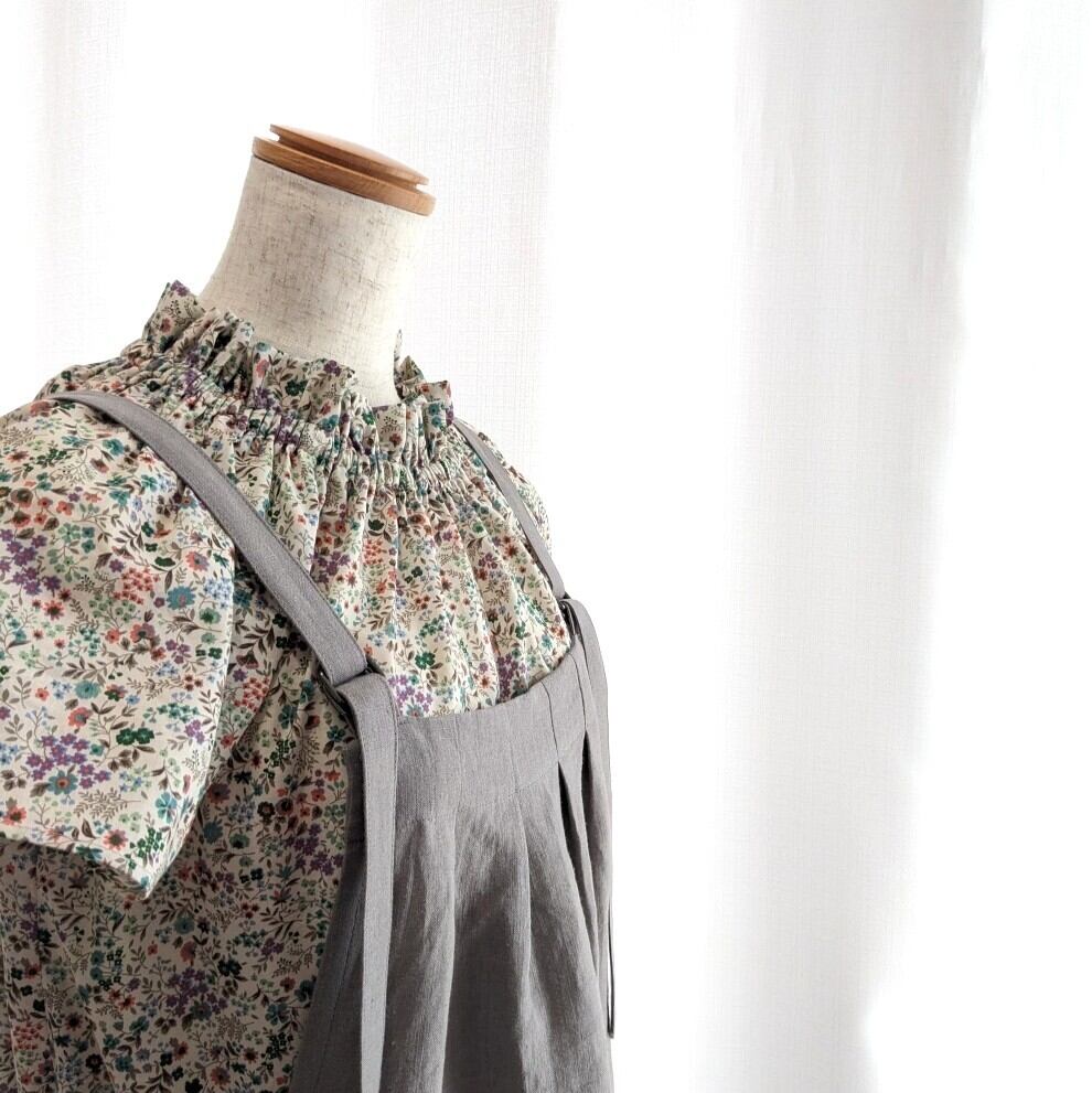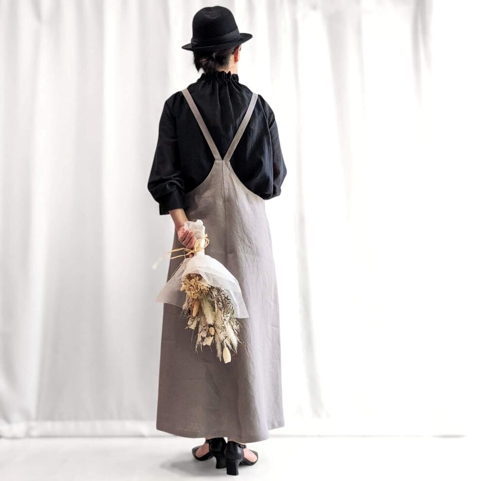 リネン サロペットスカート(グレー)