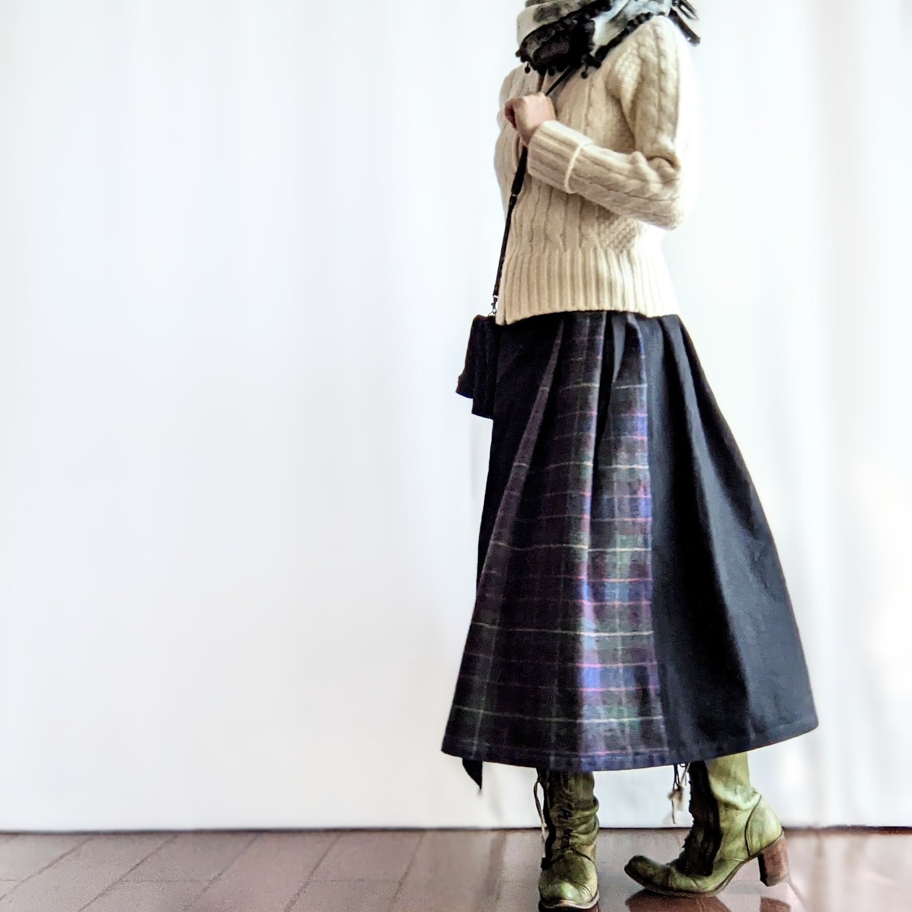細見え、ちゅくラップスカート グリーンチェック×ブラック